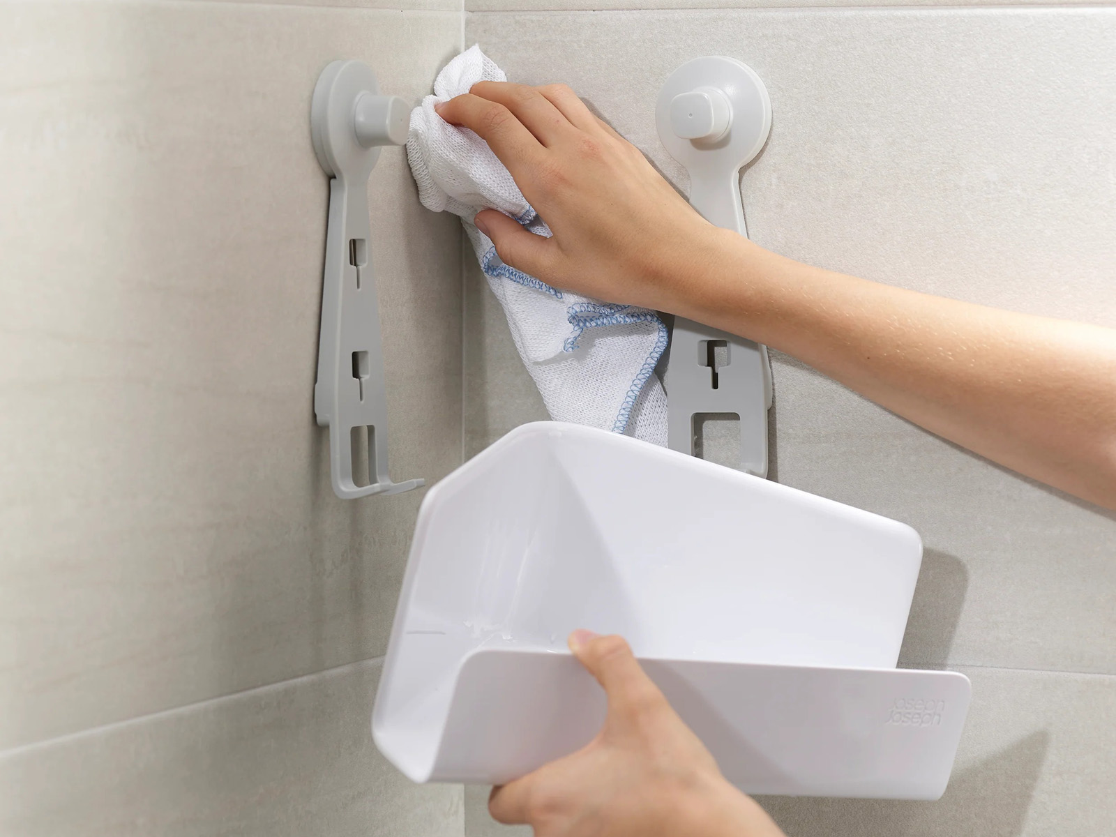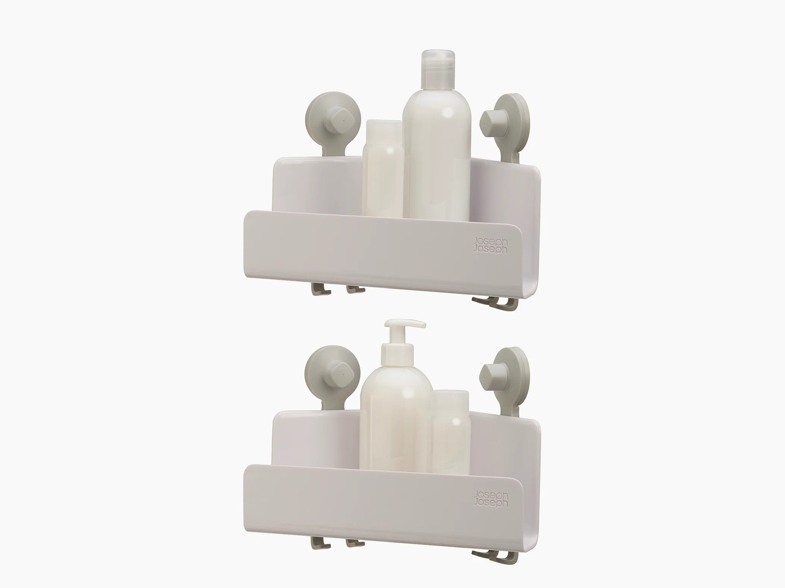 Pojemniki półek można zdjąć bez demontażu przyssawek w celu oczyszczenia powierzchni znajdujących się za nimi, każda półka mieści do 3 kg kosmetyków i akcesoriów do mycia.