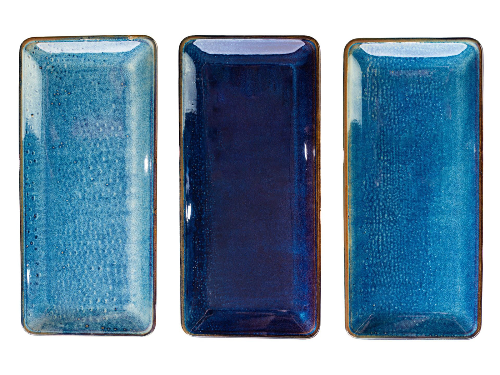 Verlo Deep Blue to niepowtarzalna kolekcja ręcznie wytwarzanej porcelany, w której feeria żywiołowych wzorów i świateł łączy się w odbiciu dziko niebieskiej natury. Dzięki powłoce z reaktywnego szkliwa każde naczynie zyskuje charakter malowanego na wodzie dzieła skomponowanego z płynnych, nieregularnych elementów. Zastawa oczarowuje głębią odcieni, które prowadzą w podróż od turkusowych lagun i szmaragdowych zatok, przez atramentowy ocean, aż po lazurowe niebo rozświetlone słońcem i granatowe, roziskrzone gwiazdami. Ranty i uszka przywodzą na myśl piaszczyste brzegi, a połysk i faktura – muszle polerowane falami, które podkreślają organiczne piękno zamknięte w ceramice.
