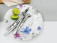 Biała porcelana z szarym, różowym i niebieskim wzorem