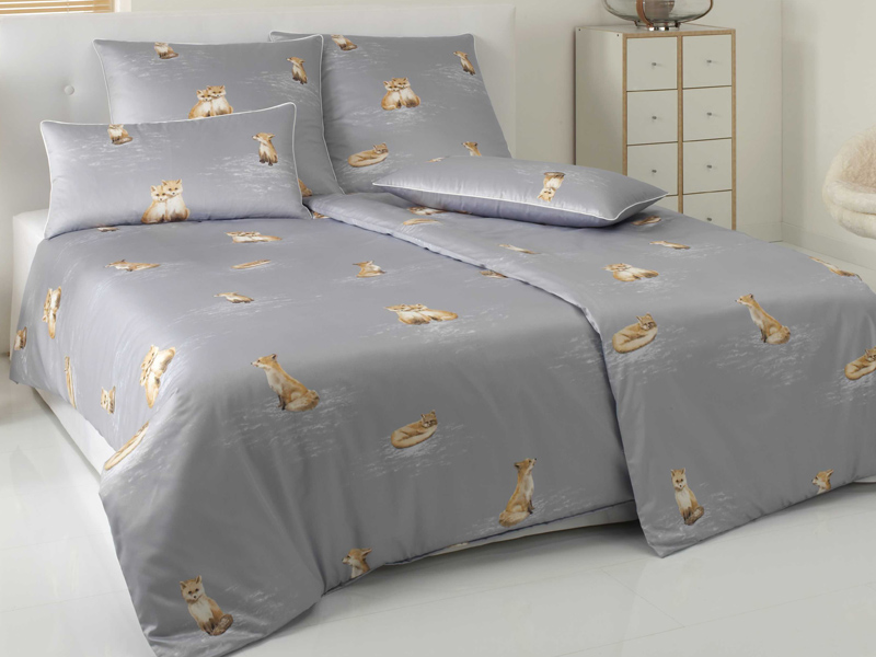 Pościel utrzymana jest w szarej tonacji