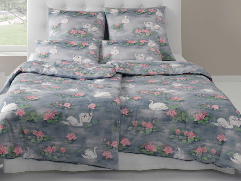 Pościel utrzymana jest w szarej tonacji