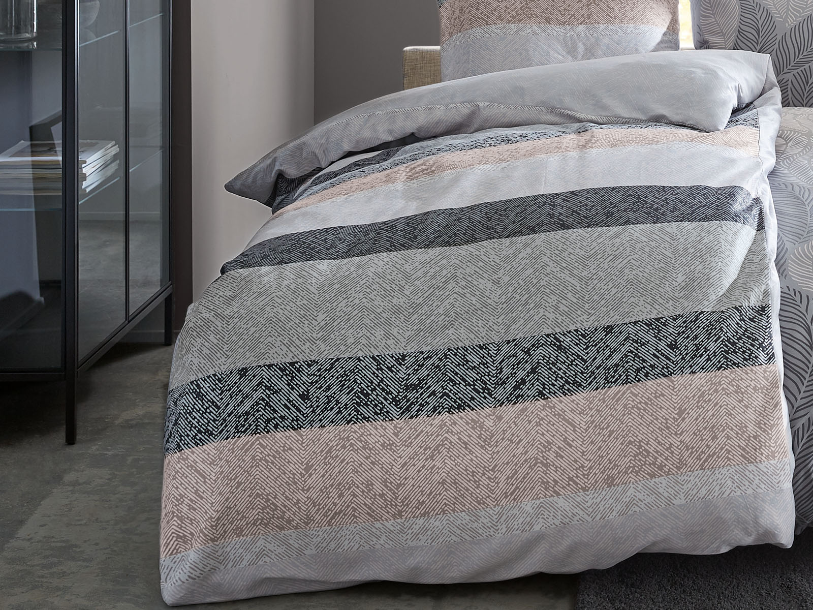 Pościel utrzymana jest w brązowo-różowej tonacji