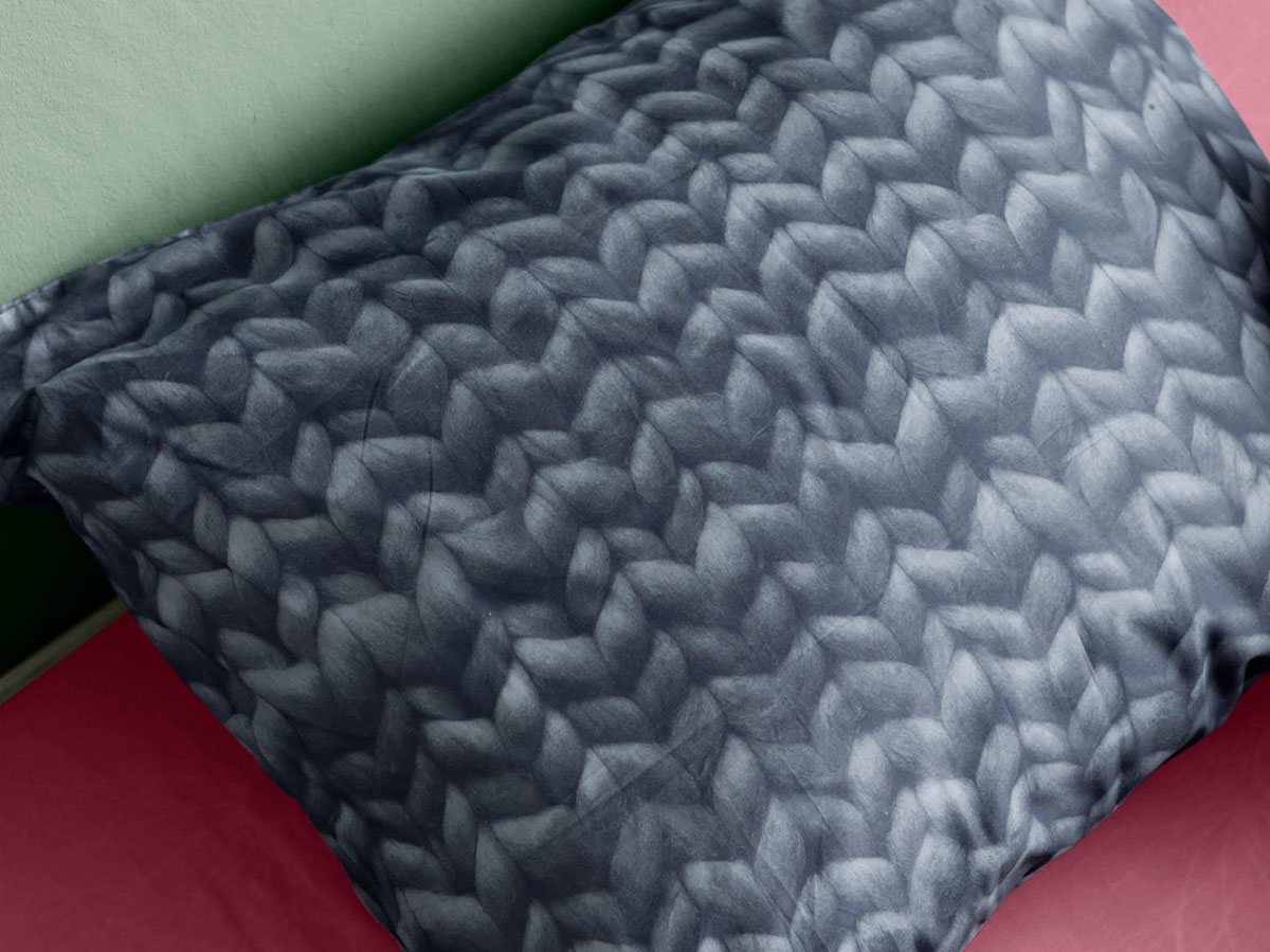 Wełniany szal, wełniany sweter czy grube skarpety zrobione przez babcię na drutach ? - Nie! To pościel bawełniana, która równie ciepło otuli, a tylko wygląda jakby była zrobiona na drutach, ponieważ na pościeli Twirre został fotograficznie odzwierciedlony wzór wełnianego splotu.