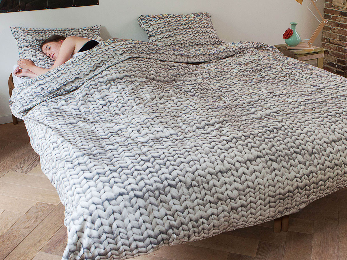 Wełniany szal, wełniany sweter czy grube skarpety zrobione przez babcię na drutach ? - Nie! To pościel bawełniana, która równie ciepło otuli, a tylko wygląda jakby była zrobiona na drutach, ponieważ na pościeli Twirre został fotograficznie odzwierciedlony wzór wełnianego splotu.