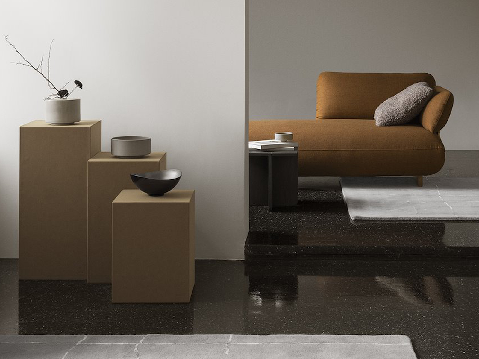 Sahla to kolekcja postumentów, która łączy nowoczesną formę z szerokim zastosowaniem w różnego typu wnętrzach. Każdy podest pokryty jest skórą ekologiczną PU o zamszowym wykończeniu, które pasuje do stylu domowych mebli.