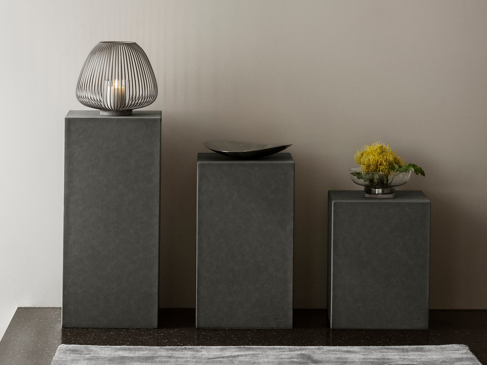 Sahla to kolekcja postumentów, która łączy nowoczesną formę z szerokim zastosowaniem w różnego typu wnętrzach. Każdy podest pokryty jest skórą ekologiczną PU o zamszowym wykończeniu, które pasuje do stylu domowych mebli.