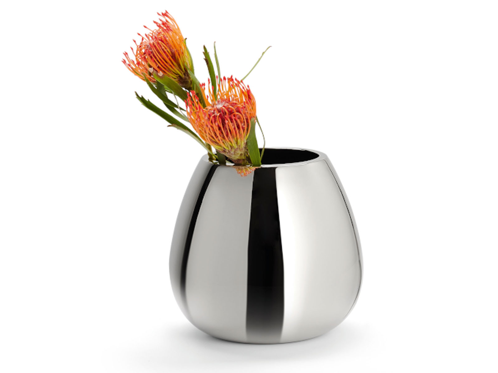 Wazon wykonany jest z litego aluminium niklowanego na wysoki połysk.