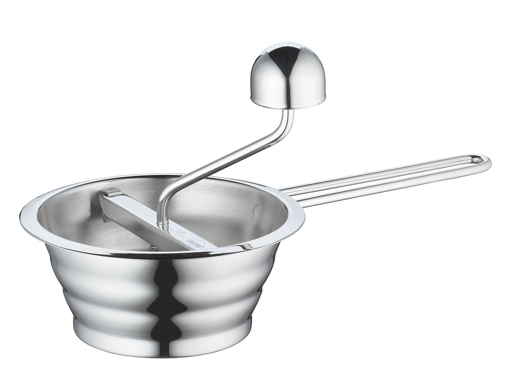 Oryginalny ręczny przecierak do warzyw i owoców wykonany z wysokiej jakości stali nierdzewnej.