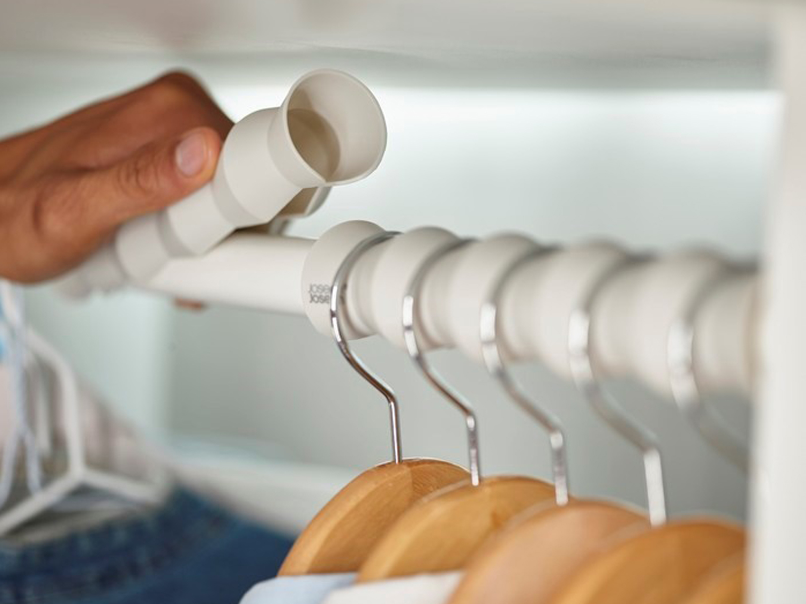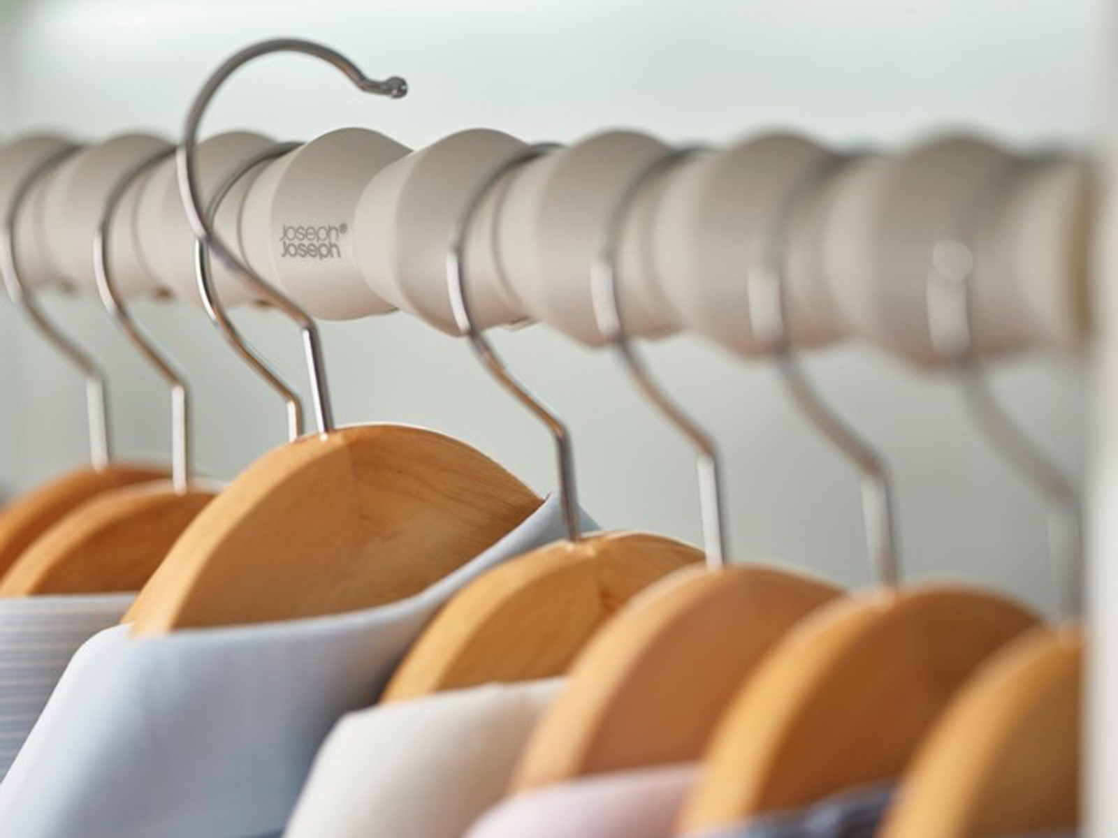 Zestaw przekładek na drążek Joseph Joseph Orderly pomaga utrzymać lepszą organizację ubrań i wygodniej korzystać z wieszaków.