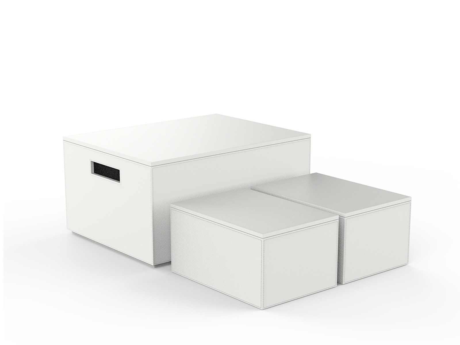 Elegancki efekt skóry umożliwia użycie pudełek również w łazience oraz salonie.