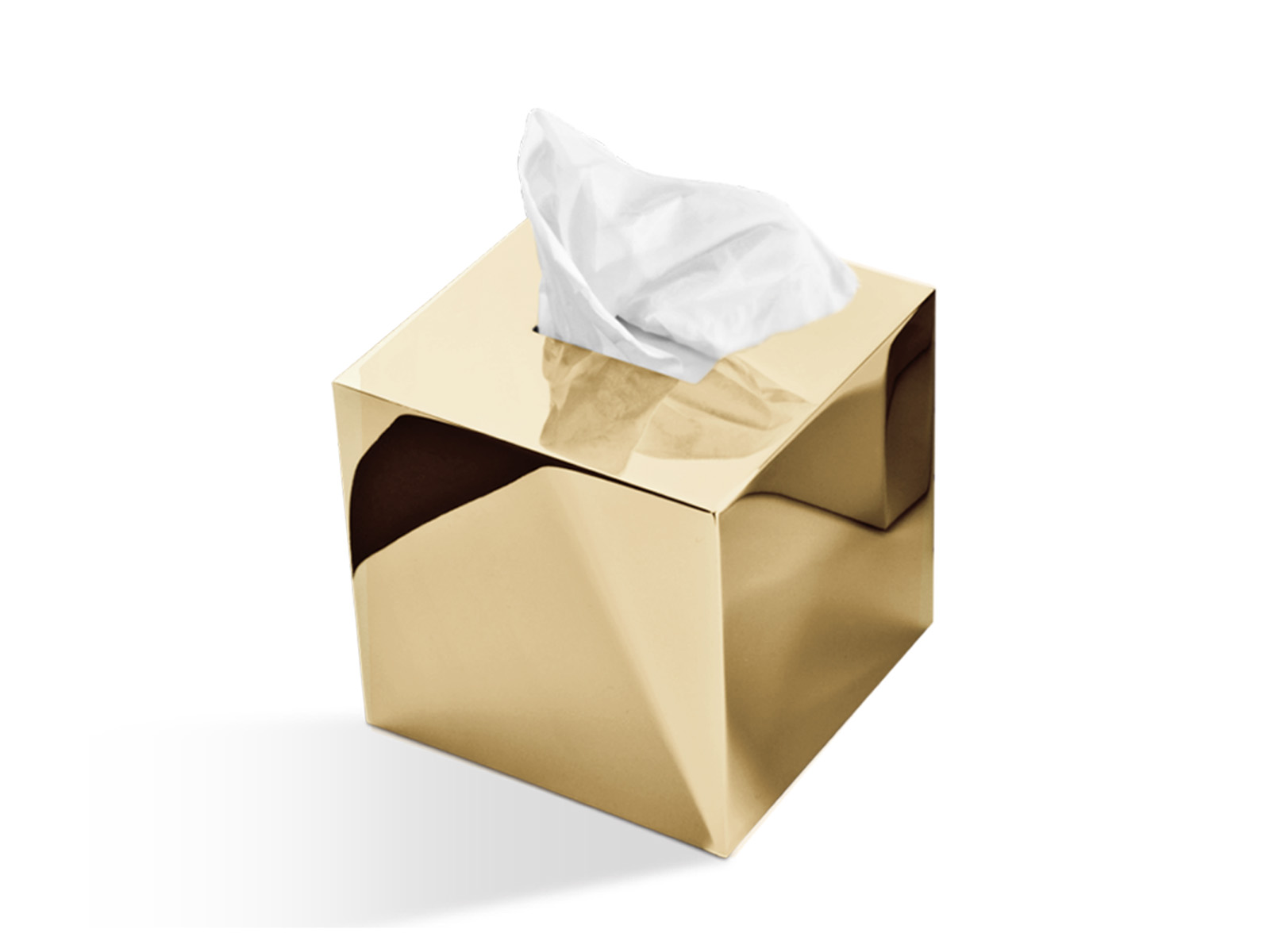 Eleganckie nablatowe pudełko na chusteczki papierowe wykonane z wysokiej jakości pozłacanego 24-karatowym złotem mosiądzu.