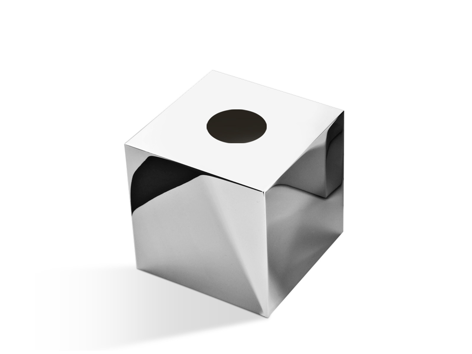 Eleganckie nablatowe pudełko na chusteczki papierowe wykonane z wysokiej jakości chromowanego mosiądzu.
