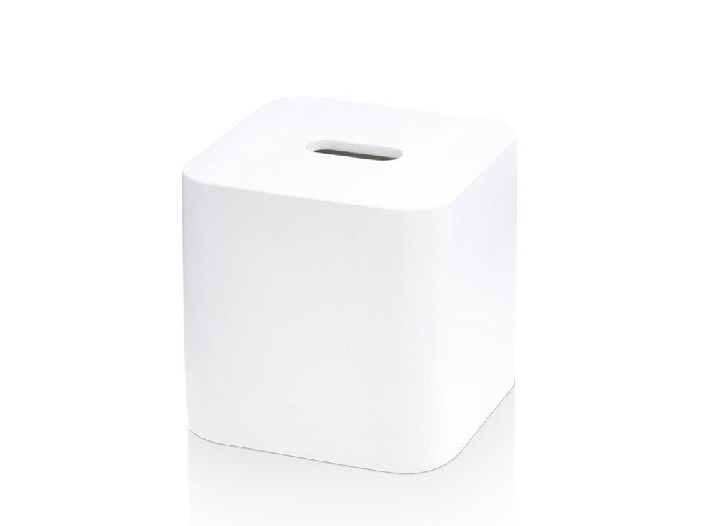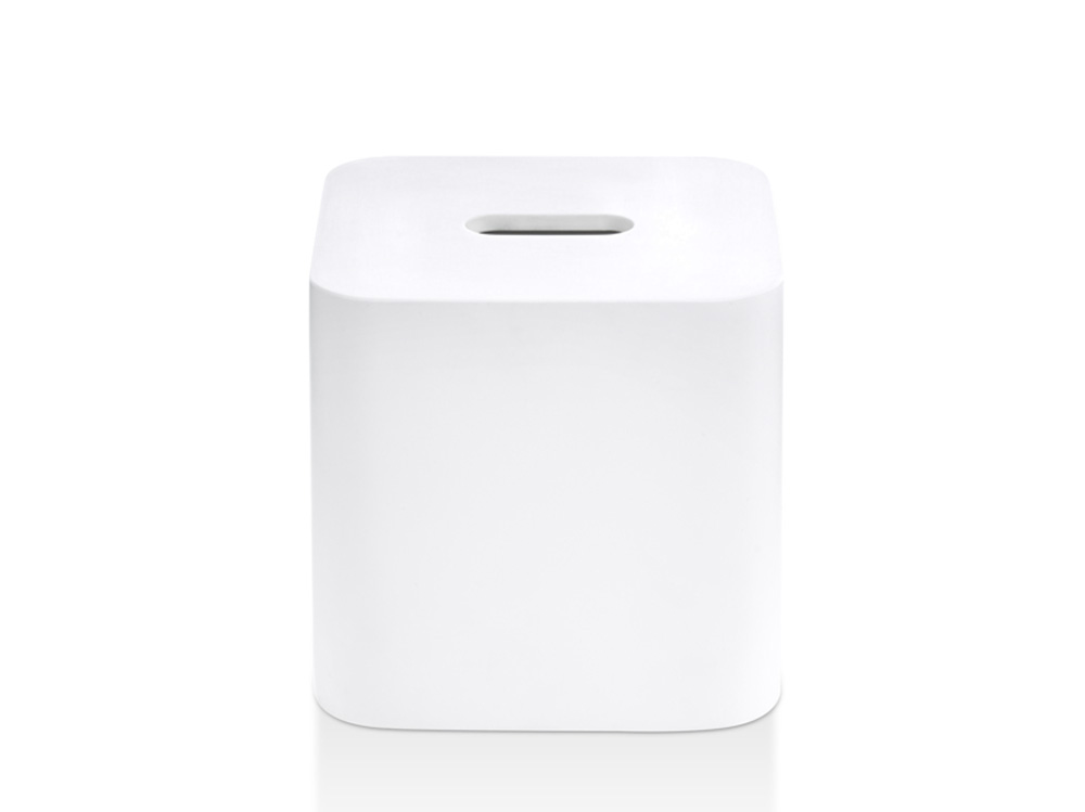 Eleganckie kwadratowe nablatowe pudełko na chusteczki papierowe wykonane z innowacyjnego, odpornego na uszkodzenia a zarazem przyjaznego dla środowiska kompozytu mineralnego.