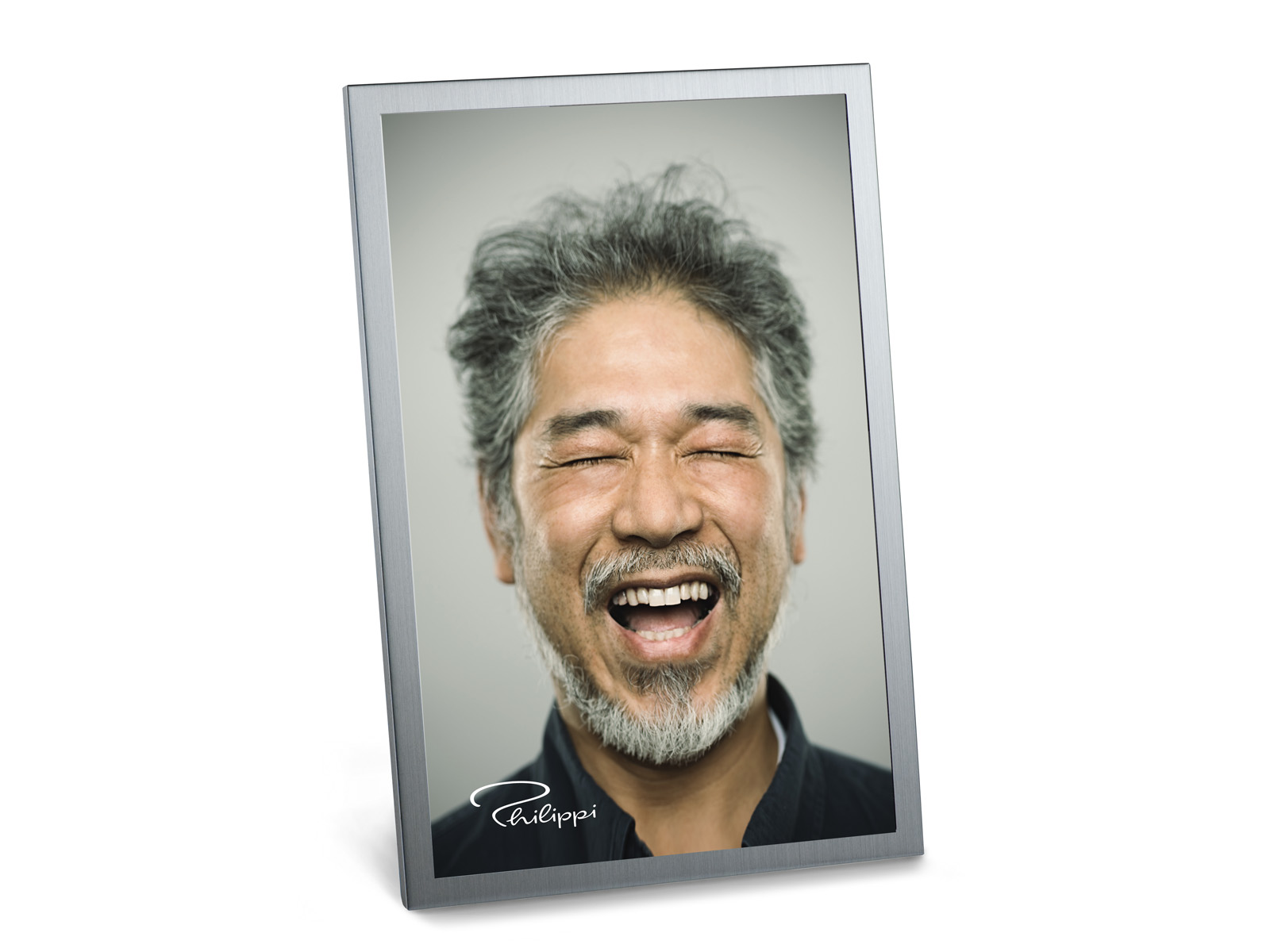 Ramka wykonana ze szczotkowanego aluminium z wąskimi równymi brzegami.