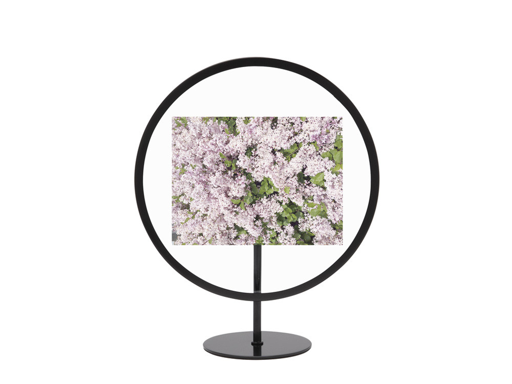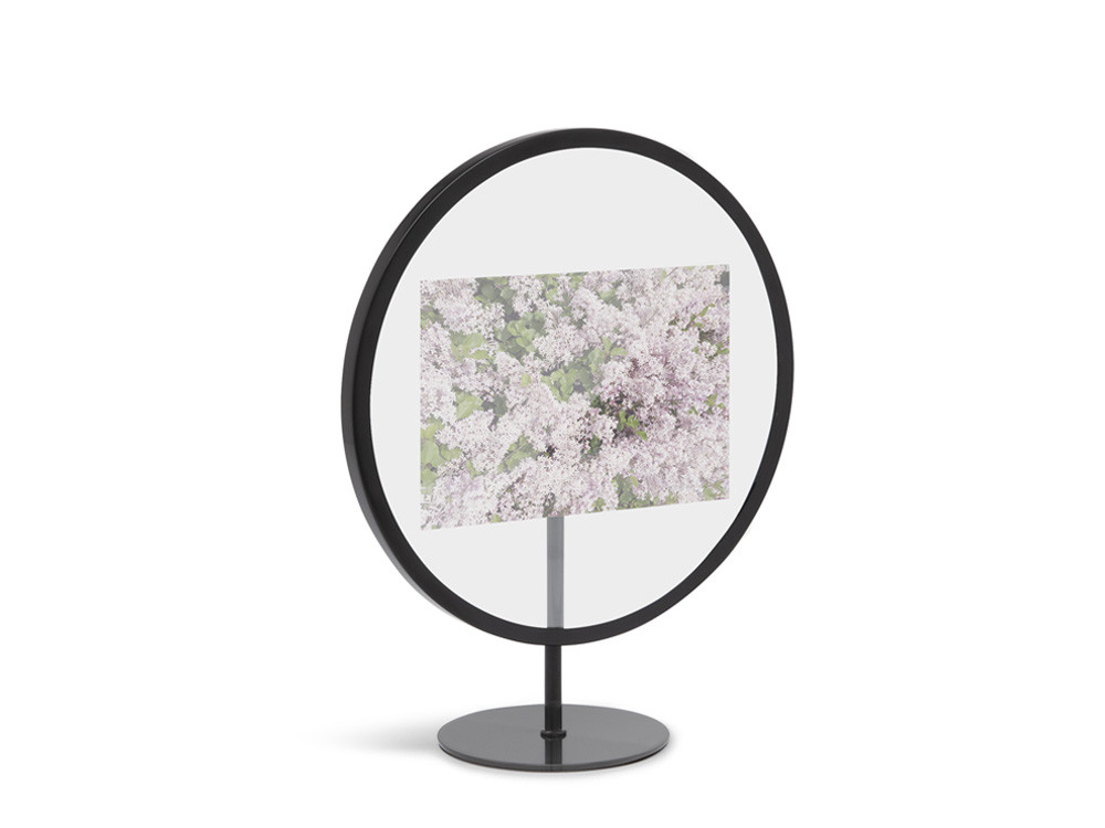 Elegancka okrągła ramka na zdjęcia, które umieszczane są między dwoma taflami przezroczystego szkła.
