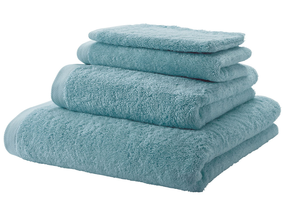 Ręcznik utrzymany jest w pudrowanej turkusowej tonacji