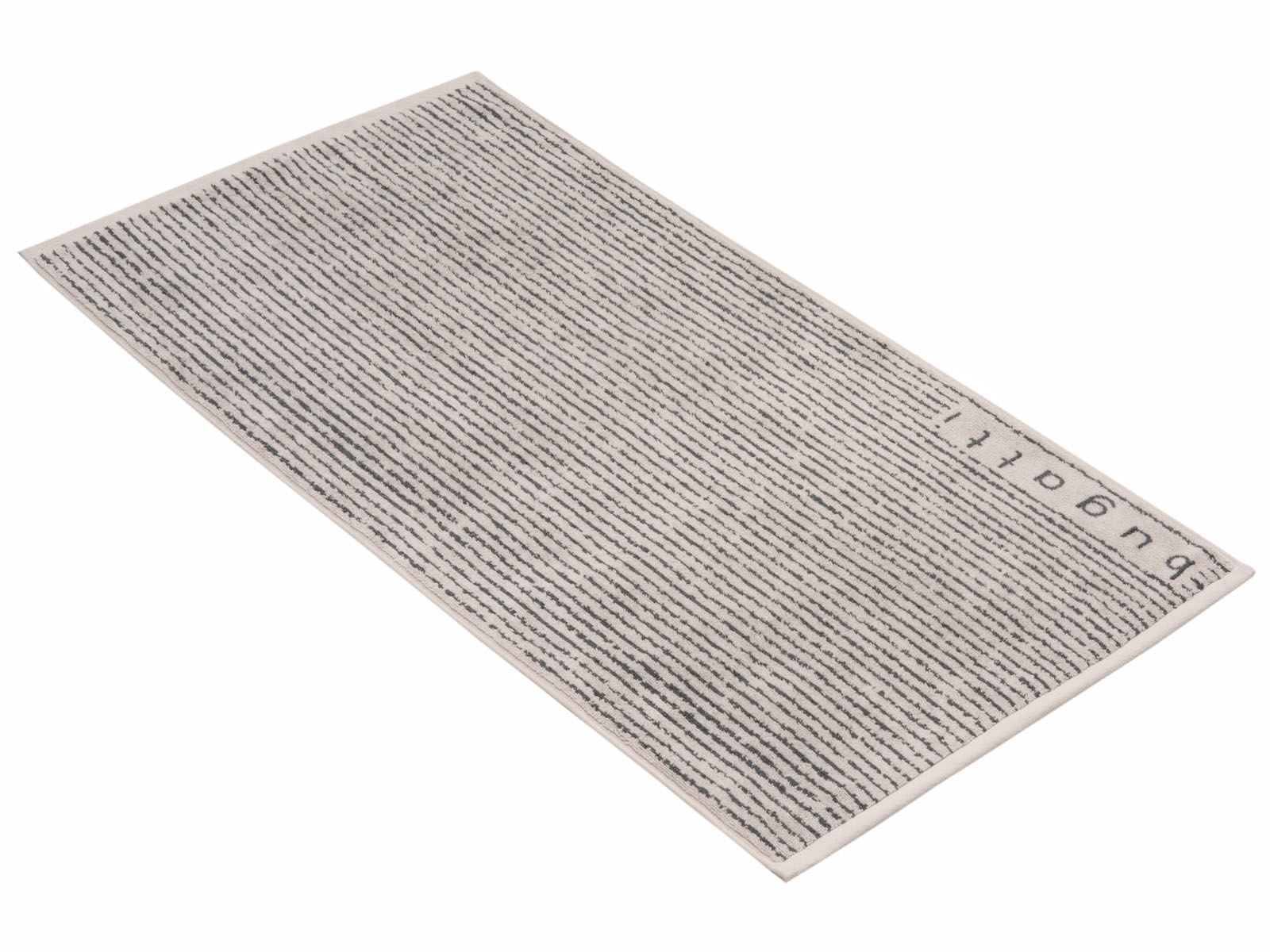Bugatti Tiago to limitowana kolekcja ręczników łazienkowych marki BUGATTI. Tiago to bardzo elegancki i świetny jakościowo ręcznik o wysokiej gramaturze 550g/m2. Posiada wzór w delikatne szare prążki oraz logotyp Bugatti