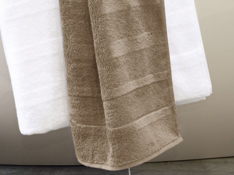 Noblesse Uni to bardzo eleganckie jednokolorowe ręczniki z charakterystycznymi poprzecznymi pasami uzyskanymi poprzez użycie różnego rodzaju włókna. Szerokie pasy to klasyczne włókno pętelkowe, natomiast wąskie pasy to cięte frotte sprawiające wrażenie weluru.