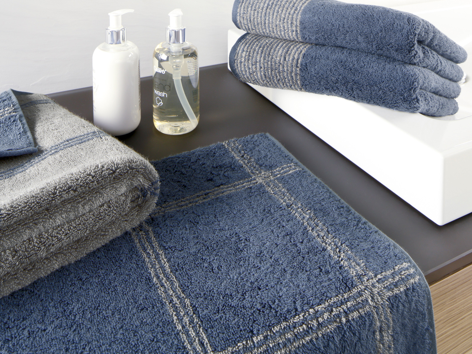 Ręcznik utrzymany jest w ciemnoniebieskiej tonacji