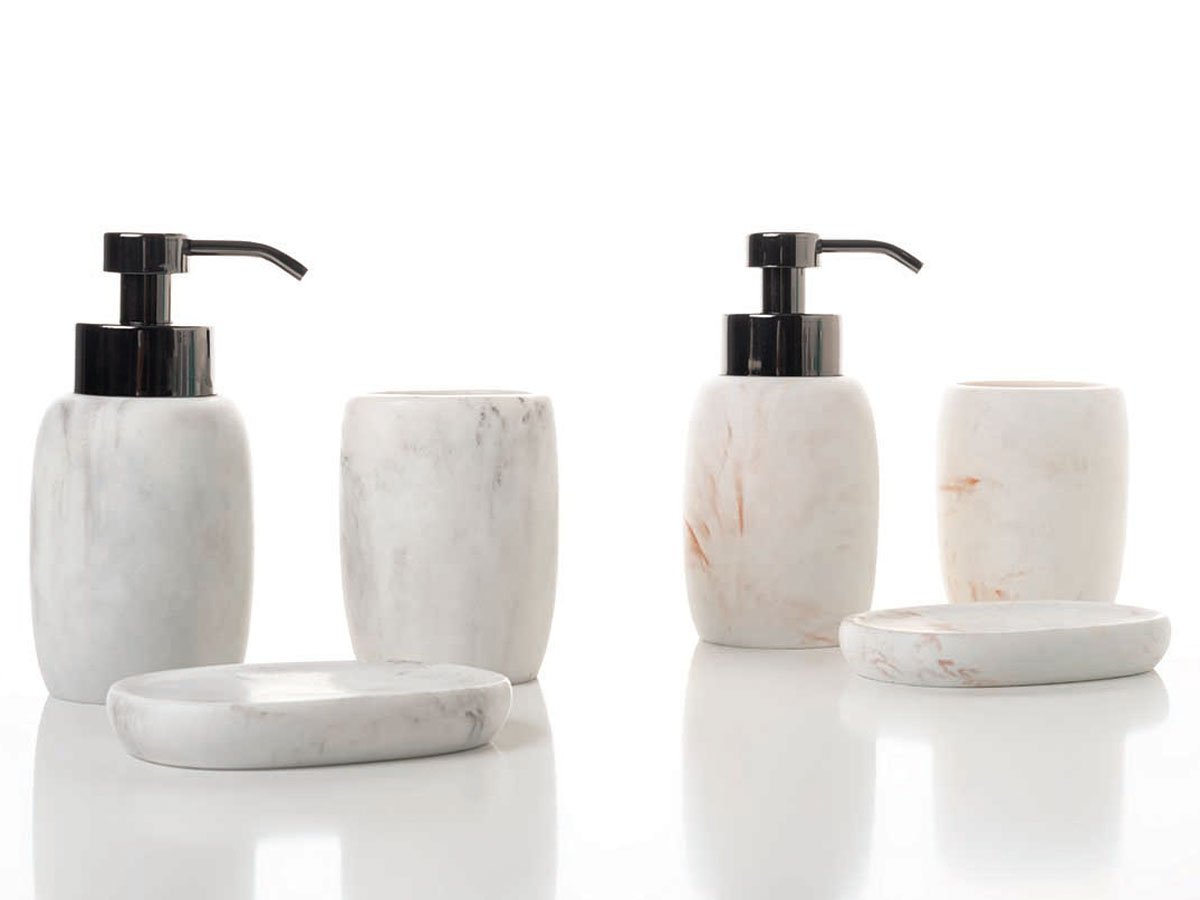 Sorema Marble to oryginalna kolekcja wzornicza wysokojakościowych tekstyliów łazienkowych oraz akcesoriów łazienkowych. Bazowy wzór kolekcji stanowią nieregularne kształty wzorowane na strukturze naturalnego marmuru - wzory te pojawiają się zarówno na dywanikach, ręcznikach, jak i na akcesoriach. Całość stanowi spójną propozycję dekoracyjną.