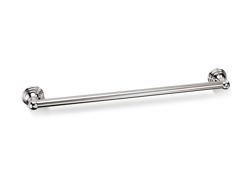 Elegancki poziomy ścienny wieszaka na ręczniki w formie pojedynczego relingu z ozdobnymi mocowaniami.