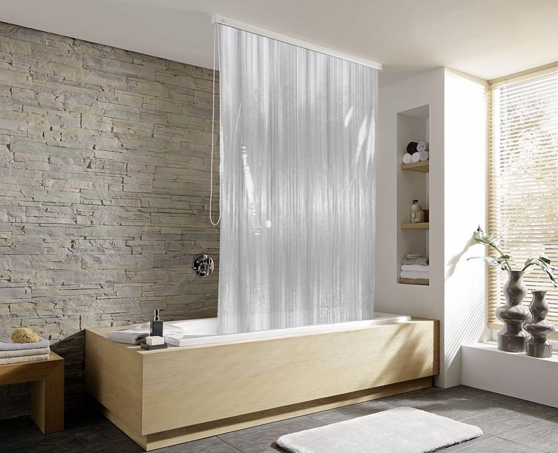 Duschrollo to kolekcja rolet do wanny, które z powodzeniem mogą zastąpić zasłony prysznicowe. Bardzo estetyczne, po zwinięciu chowające się w kasetach montowanych pod sufitem, dzięki czemu nie zajmują miejsca i nie zakłócają porządku w łazience.