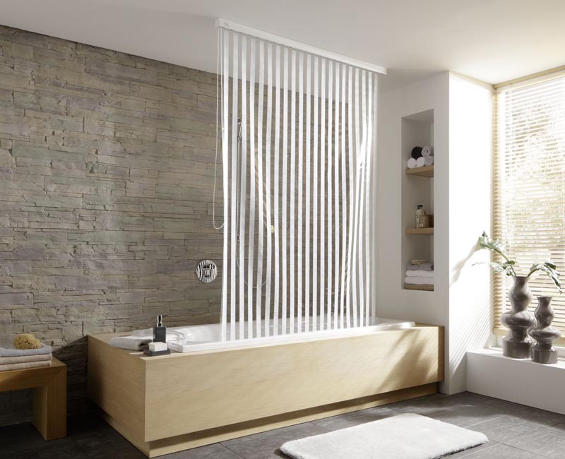 Duschrollo to kolekcja rolet do wanny, które z powodzeniem mogą zastąpić zasłony prysznicowe. Bardzo estetyczne, po zwinięciu chowające się w kasetach montowanych pod sufitem, dzięki czemu nie zajmują miejsca i nie zakłócają porządku w łazience.