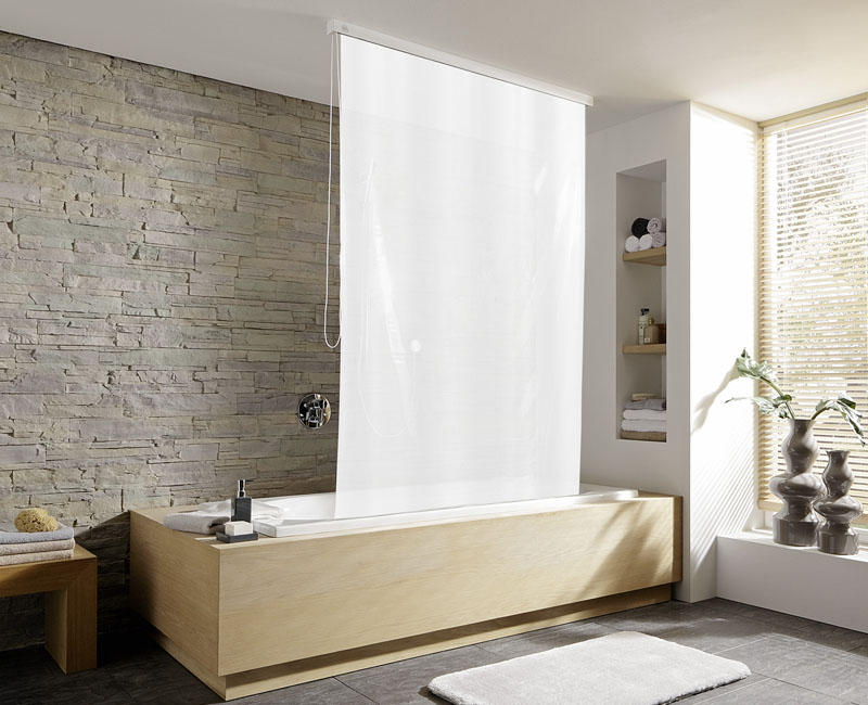 Duschrollo to kolekcja rolet do wanny, które z powodzeniem mogą zastąpić zasłony prysznicowe. Bardzo estetyczne, po zwinięciu chowające się w kasetach montowanych pod sufitem, dzięki czemu nie zajmują miejsca i nie zakłócają porządku w łazience.