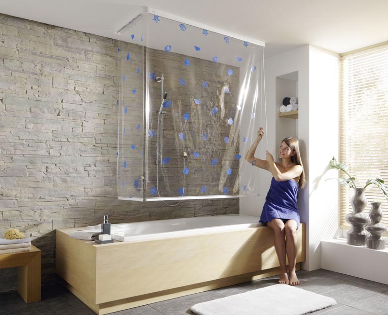 Duschrollo to kolekcja rolet do wanny, które z powodzeniem mogą zastąpić zasłony prysznicowe. Bardzo estetyczne, po zwinięciu chowające się w kasetach montowanych pod sufitem, dzięki czemu nie zajmują miejsca i nie zakłócają porządku w łazience.