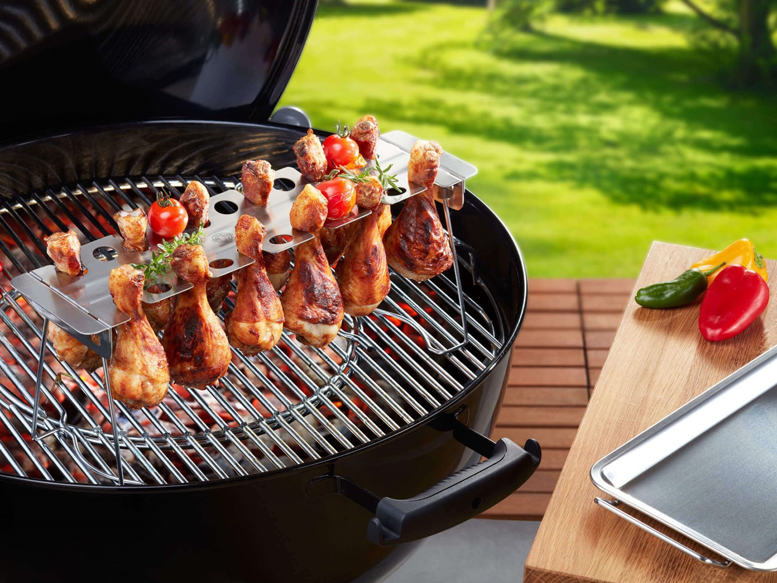 Ruszt GEFU BBQ to praktyczne narzędzie, które umożliwia równomierne grillowanie aż 12 nóżek lub skrzydełek kurczaka, bez konieczności odwracania ich podczas pieczenia. Dzięki niemu szybciej i prościej powstaną duże porcje soczystych, złocistych nóżek albo skrzydełek. Wbudowana tacka stanowi doskonałe miejsce na warzywa, które podczas grillowania wchłoną aromat spływającego tłuszczu i marynaty z mięsa, tworząc wyjątkowy dodatek do posiłku. Składana konstrukcja pozwala na oszczędność miejsca podczas przechowywania, a możliwość mycia w zmywarce znacznie ułatwia utrzymanie czystości po każdym użyciu.