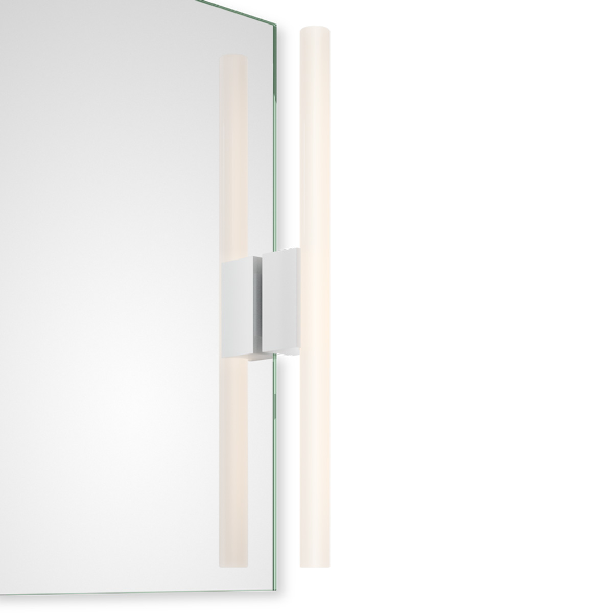 Konstrukcja lampy wykonana z wysokiej jakości lakierowanego mosiądzu w wykończeniu matowym - lampa może być zamontowana na lustrze poziomo lub pionowo.