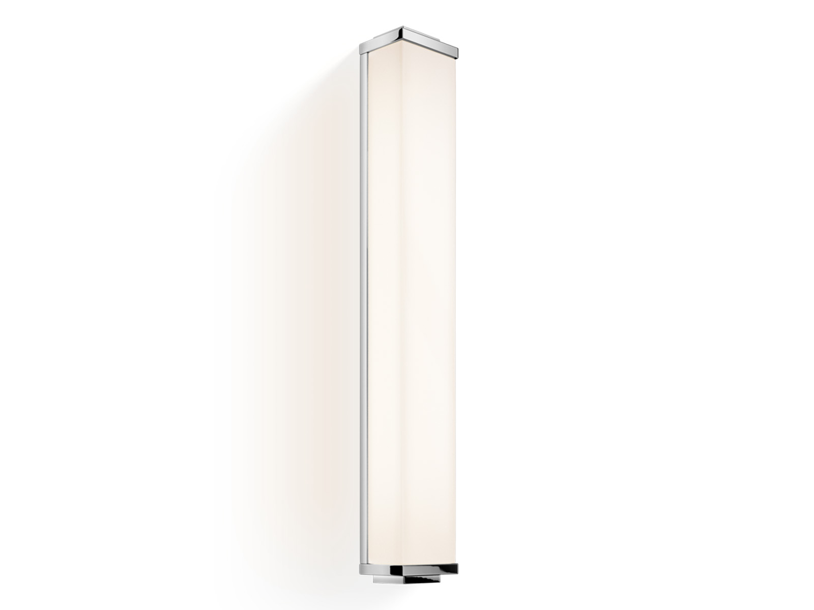 Elegancka lampa o prostokątnym kształcie mocowana do ściany, nadaje się do oświetlenia zarówno łazienki, przedpokoju i salonu.