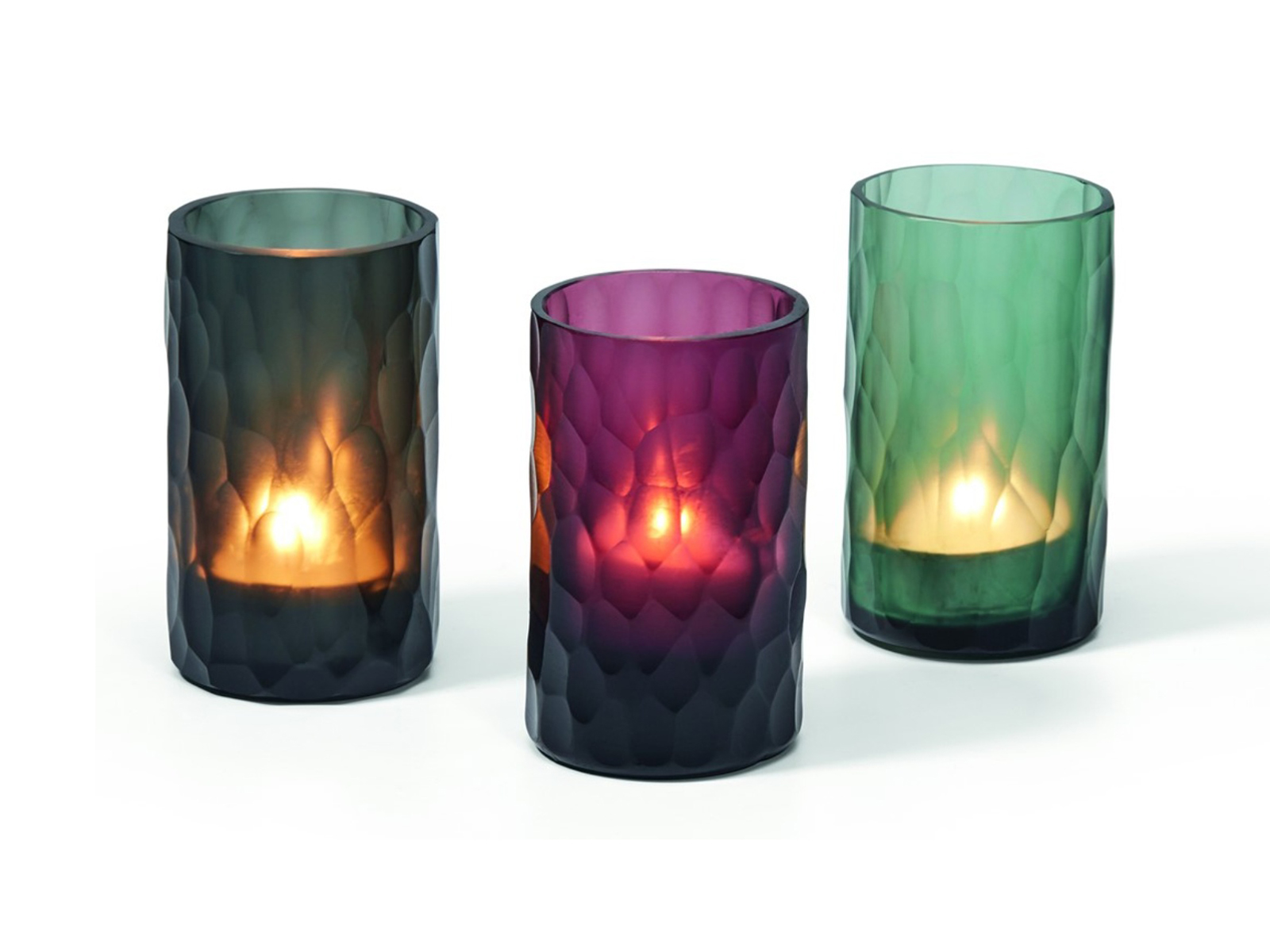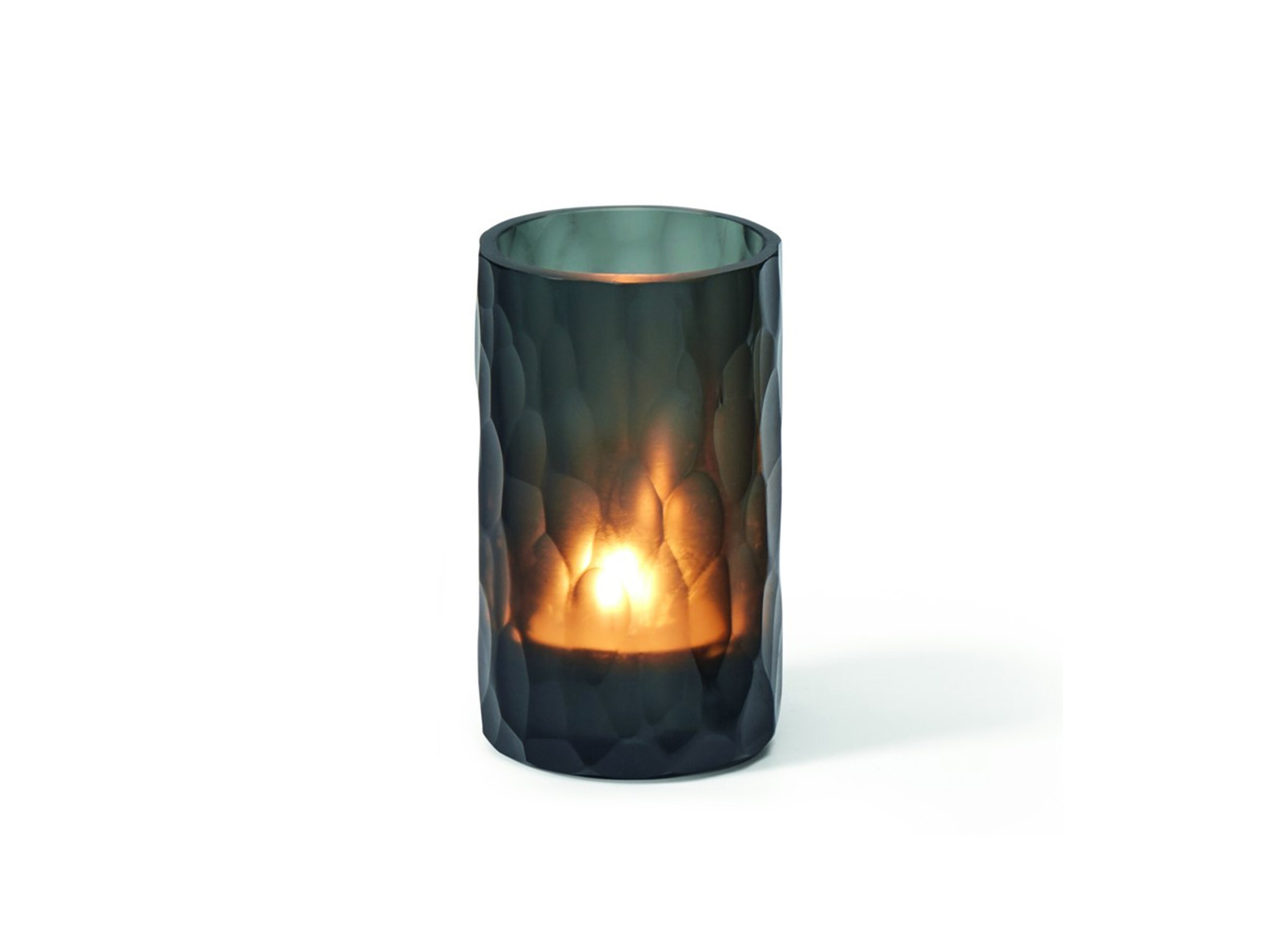 Świecznik Philippi Sofia to niewielkich rozmiarów dekoracja, która ozdabia pojedynczą świeczkę typu tealight. Jej największym atutem jest wykonanie z barwionego szkła o intensywnym odcieniu i wyjątkowej strukturze przypominającej smocze łuski. Dzięki temu tworzy w półmroku magiczną, tajemniczą aurę rodem z opowieści fantasy. Cylindryczna forma o półprzezroczystych ściankach pozostaje uniwersalna, co sprawia, że można ją dopasować do różnych kompozycji świetlnych.