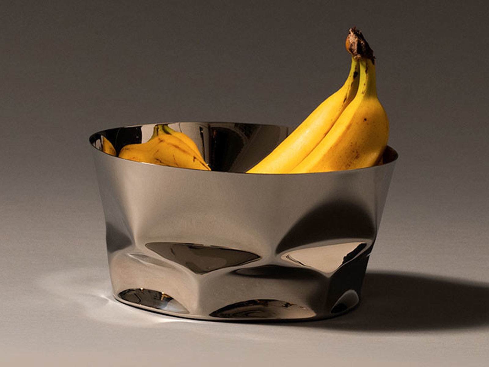 Kosz Compressioni z kolekcji Il Tornitore Matto to wyrazisty przykład eksperymentalnego podejścia do formowania metalu, opracowanego przez Paolo Uliana. Teksturowana powierzchnia w dynamiczny sposób odbija światło, podkreślając naturalne właściwości polerowanej stali. Każdy kosz jest unikatowym, „seryjnym” obiektem, różniącym się subtelnymi detalami wynikającymi z ręcznego odkształcania metalu.