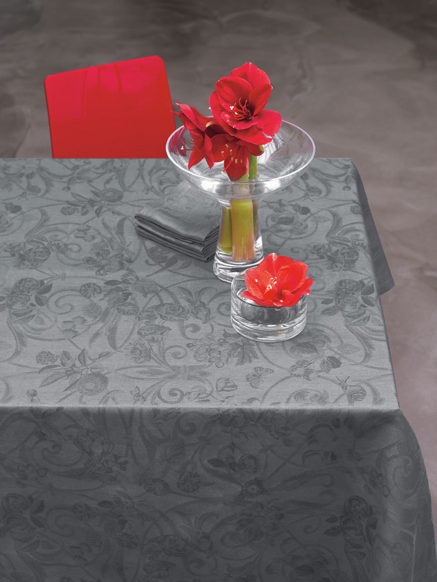 Kolekcja obrusów Le Jacquard Francais to esencja francuskiego szyku, niebanalnej elegancji i luksusu oraz prawdziwy majstersztyk domowej mody tekstylnej, m.in. obrusowej. Do produkcji obrusów Le Jacquard Francais wykorzystywane są wyłącznie najlepszej jakości tkaniny żakardowe.