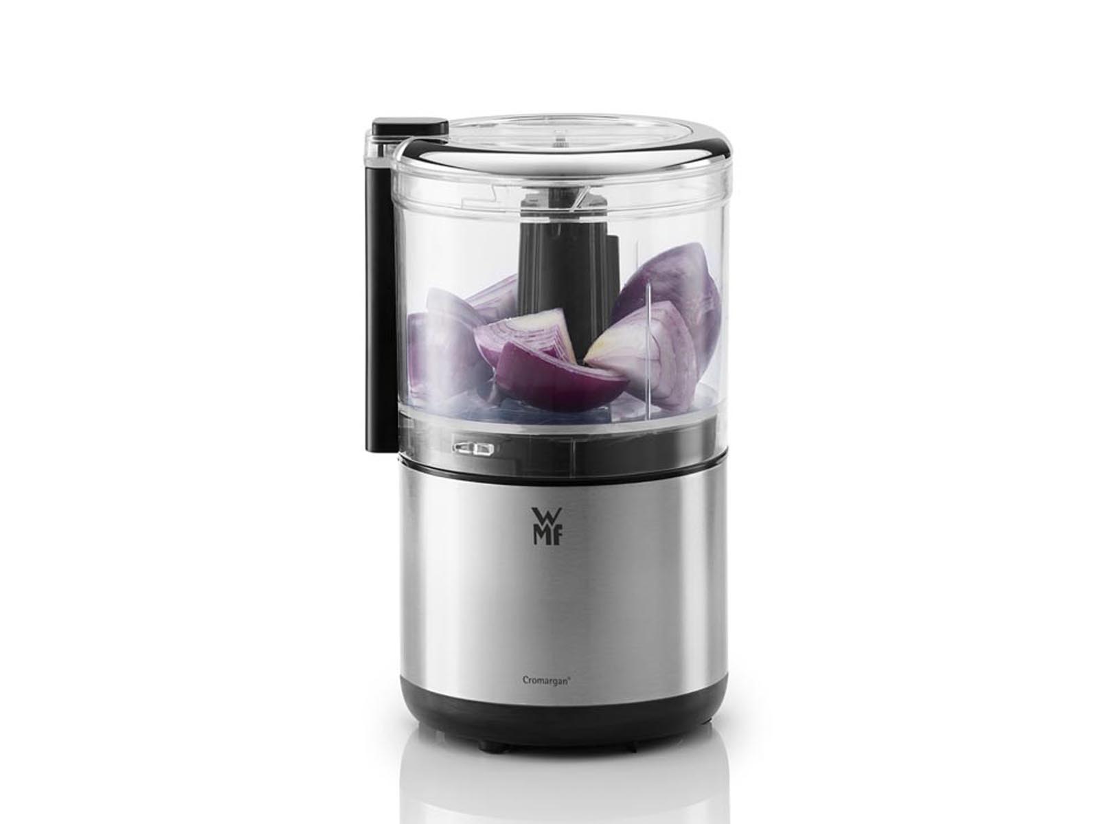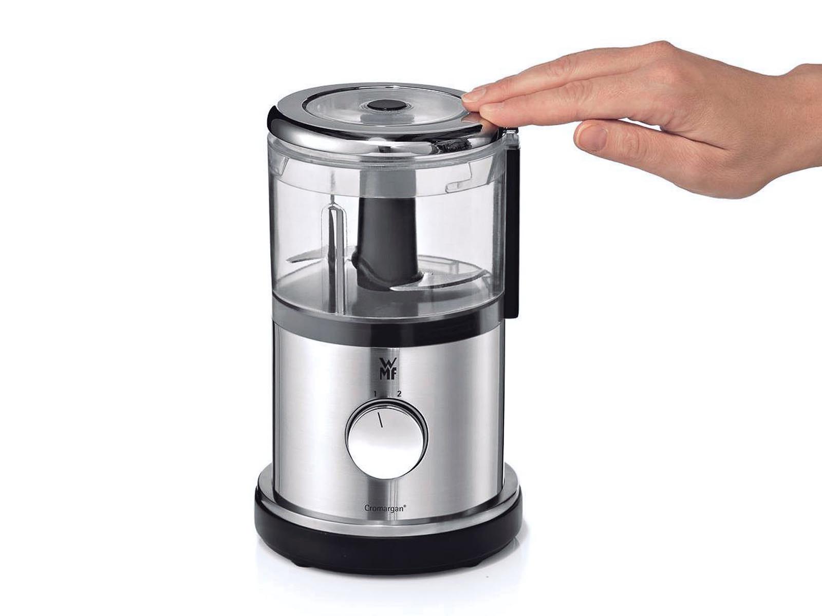 Siekacz posiada wyjmowane wysokiej jakości podwójne ostrze ze stali nierdzewnej z technologią WMF Perfect Cut zapewniającą doskonałe rezultaty rozdrabniania zarówno miękkich jak i twardych produktów żywnościowych.