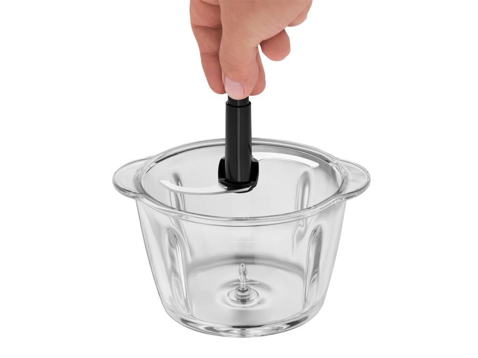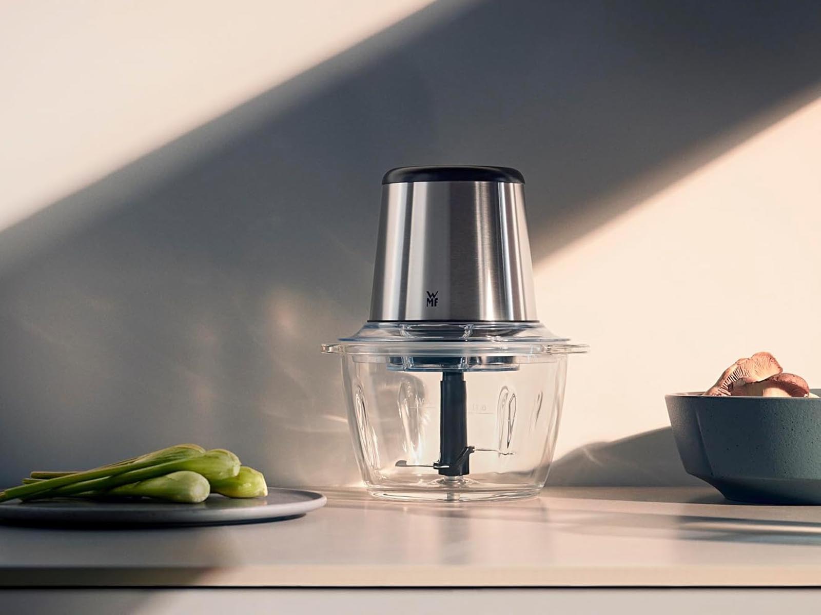 Elegancki nablatowy elektryczny rozdrabniacz do siekania, miksowania, mielenia i krojenia różnego rodzaju produktów spożywczych takich jak: warzywa, czekolada, orzechy, ser, zioła i wiele innych produktów.