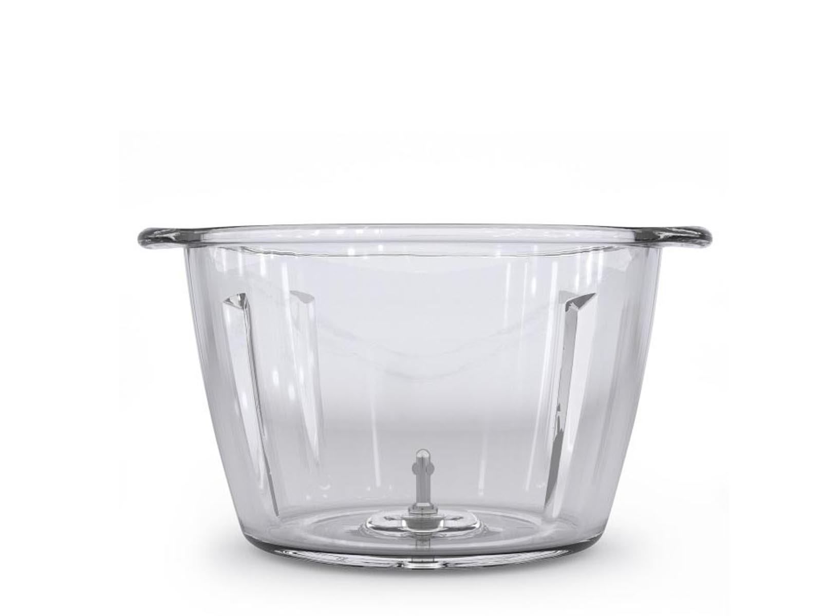 Rozdrabniacz z podstawą w postaci szklanego pojemnika do rozdrabniania o pojemności 1 litra wykonany z przezroczystego bezbarwnego szkła.