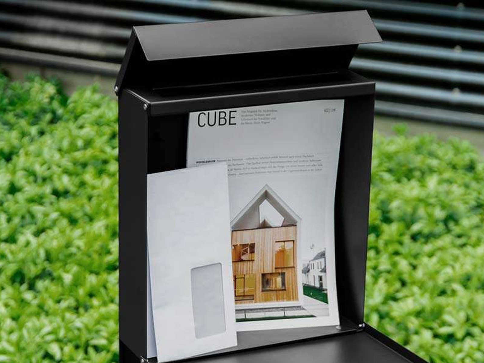 Szeroki otwór wrzutowy o wymiarach 32,5 x 3,5 cm umożliwia umieszczanie w skrzynce również dużych kopert (listów lub przesyłek) o formacie C4 bez konieczności ich składania.