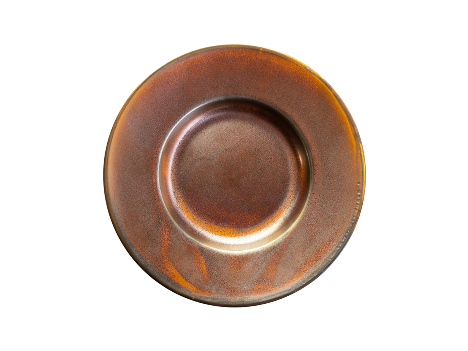 Verlo Fire to niezwykle inspirująca kolekcja, w której zaklęto siłę magmy i żar palonej ziemi. Cała zastawa emanuje nie tylko ciepłem, ale i różnorodnością form, faktur, wzorów i odcieni, uzyskanych dzięki reaktywnemu szkliwu i ręcznemu zdobnictwu. Naczynia pulsują pod matową powierzchnią barwami stygnącej lawy – pomarańczami, żółciami i głębokimi brązami, które podsycają żywiołowy charakter. Młotkowana struktura z wgłębieniami i wypukłościami nadaje talerzom wygląd spękanej wulkanicznej skorupy, a marszczenia – wrażenie mineralnej głębi i metalicznego blasku. Nieregularne paski, plamki, smugi przypominają języki płomieni i krople topionych skał, a falujące ranty brytfann i ramekinów wyglądają jak formowane w samym sercu wulkanu.