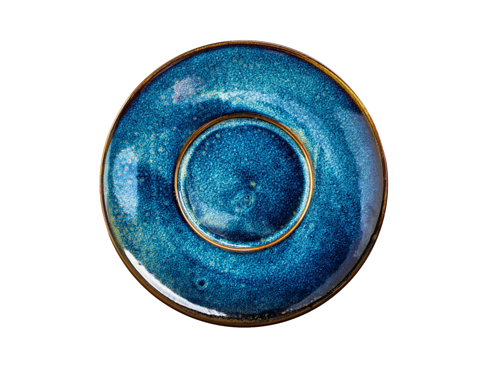 Verlo Deep Blue to niepowtarzalna kolekcja ręcznie wytwarzanej porcelany, w której feeria żywiołowych wzorów i świateł łączy się w odbiciu dziko niebieskiej natury. Dzięki powłoce z reaktywnego szkliwa każde naczynie zyskuje charakter malowanego na wodzie dzieła skomponowanego z płynnych, nieregularnych elementów. Zastawa oczarowuje głębią odcieni, które prowadzą w podróż od turkusowych lagun i szmaragdowych zatok, przez atramentowy ocean, aż po lazurowe niebo rozświetlone słońcem i granatowe, roziskrzone gwiazdami. Ranty i uszka przywodzą na myśl piaszczyste brzegi, a połysk i faktura – muszle polerowane falami, które podkreślają organiczne piękno zamknięte w ceramice.