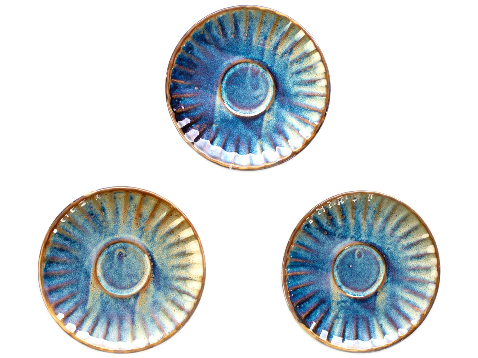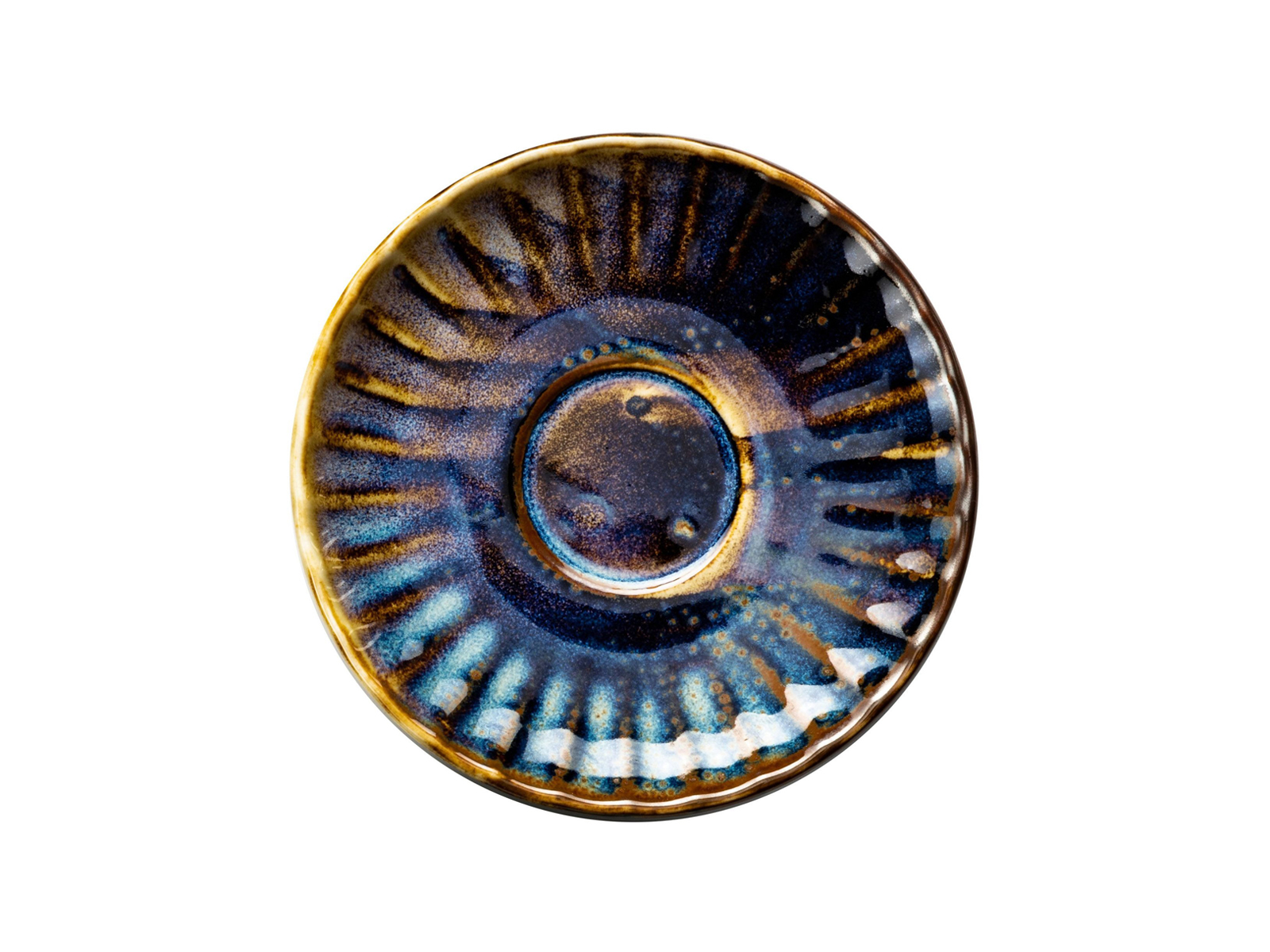 Verlo Deep Blue to niepowtarzalna kolekcja ręcznie wytwarzanej porcelany, w której feeria żywiołowych wzorów i świateł łączy się w odbiciu dziko niebieskiej natury. Dzięki powłoce z reaktywnego szkliwa każde naczynie zyskuje charakter malowanego na wodzie dzieła skomponowanego z płynnych, nieregularnych elementów. Zastawa oczarowuje głębią odcieni, które prowadzą w podróż od turkusowych lagun i szmaragdowych zatok, przez atramentowy ocean, aż po lazurowe niebo rozświetlone słońcem i granatowe, roziskrzone gwiazdami. Ranty i uszka przywodzą na myśl piaszczyste brzegi, a połysk i faktura – muszle polerowane falami, które podkreślają organiczne piękno zamknięte w ceramice.