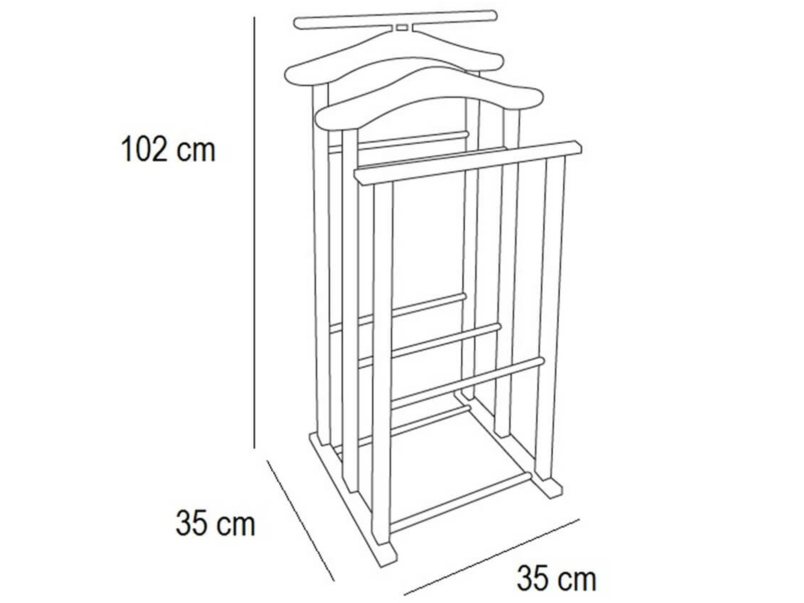 Drewniane stojaki Arredamenti są eleganckimi elementami wyposażenia, które dbają o nienaganny, wyjściowy wygląd ubrań, butów i garniturów. Podłogowy stojak Maxi wykonany z solidnego drewna bukowego, zapewnia wysoką stabilność i trwałość. Wyposażony w 2 wyprofilowane wieszaki na koszule lub marynarki, 2 uchwyty na spodnie oraz wolną przestrzeń na buty, pozwala na praktyczne uporządkowanie całego stroju. Gumowe nóżki chronią podłogę przed zarysowaniami i zwiększają stabilność konstrukcji. Wszystko to we włoskim stylu o naturalnym, drewnianym charakterze.