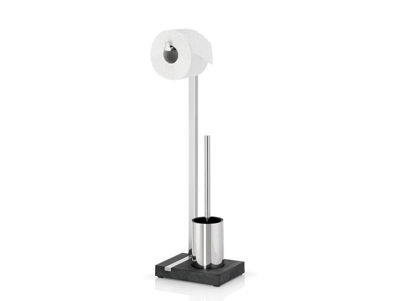 Stojak Menoto to elegancki, prosty w formie, a jednocześnie oryginalny stojak podłogowy na papier toaletowy i szczotkę toaletową do WC. Przede wszystkim stojak spełnia swoją funkcję użytkową, a ponadto może być piękną, nowoczesną dekoracją łazienki. Wykonany jest ze stali nierdzewnej oraz unikalnego materiału polystone, dzięki czemu jest bardzo trwały i posiada ponadczasowy charakter - z pewnością długo będzie zachwycał swoją formą.