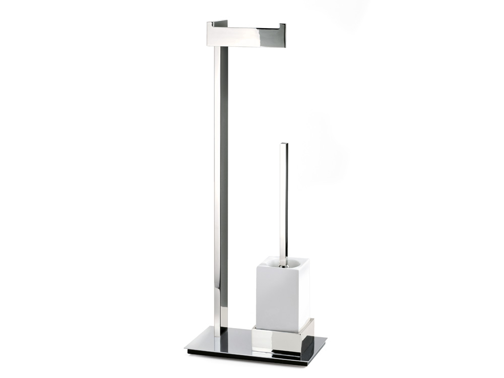 Elegancki podłogowy wolnostojący stojak na papier toaletowy i szczotkę do toalety.