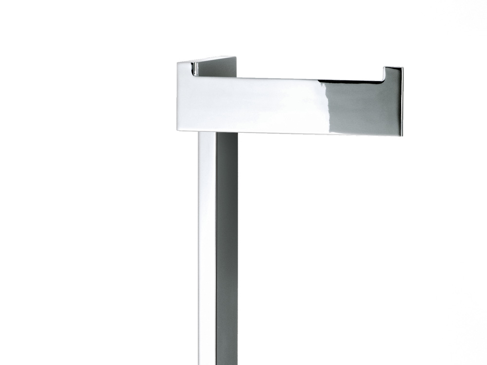 Stojak z prostokątną solidną podstawą i szerokim uchwytem na papier, wykonany z wysokiej jakości chromowanego mosiądzu.