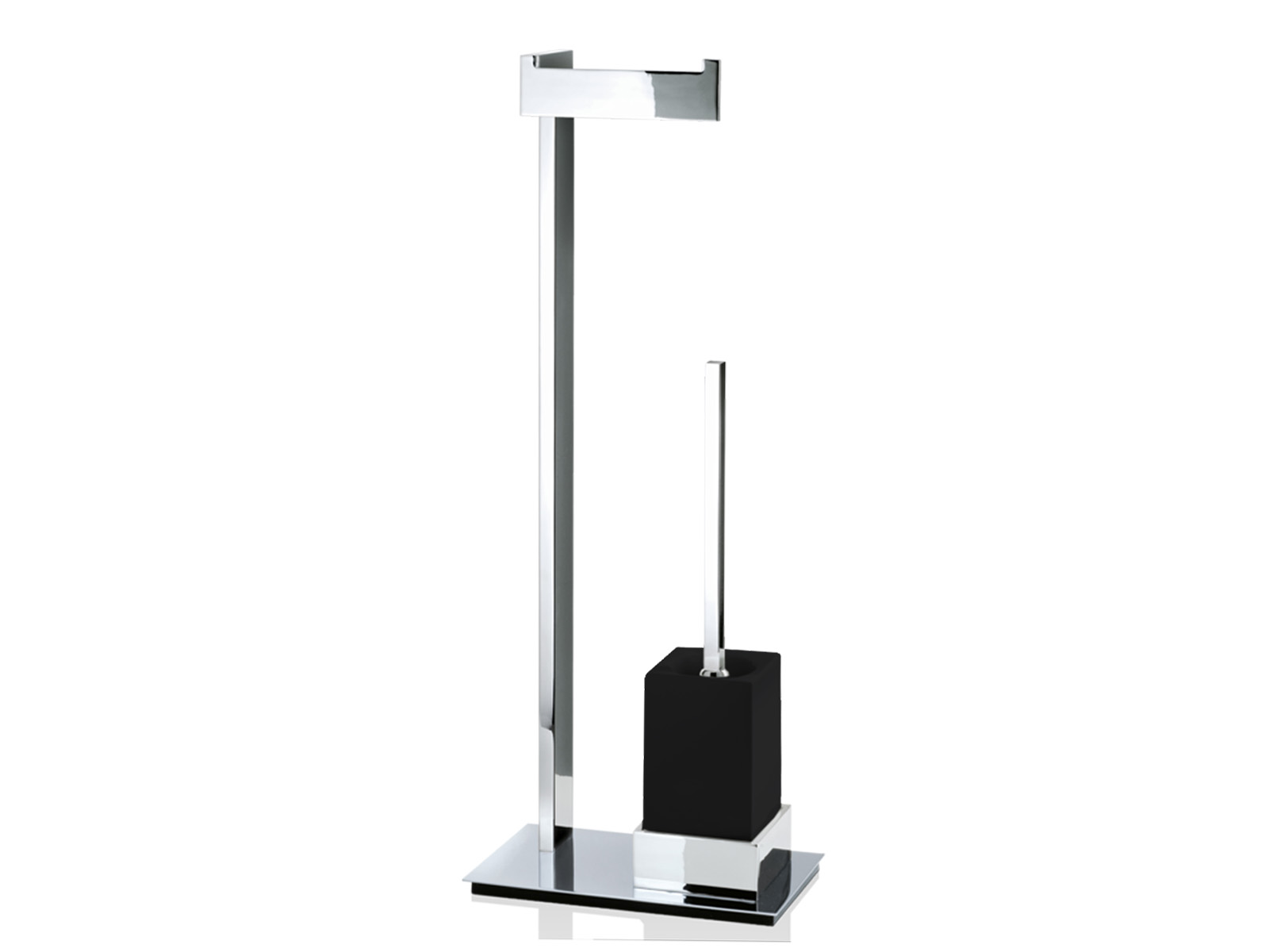 Elegancki podłogowy wolnostojący stojak na papier toaletowy i szczotkę do toalety.