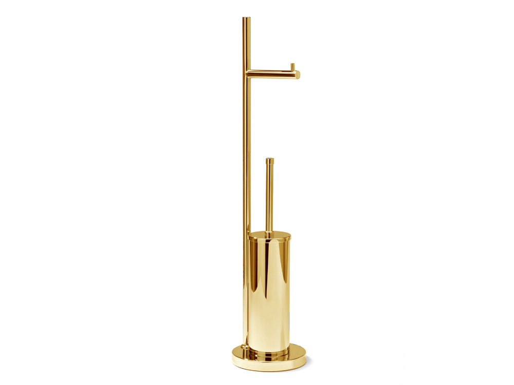 Elegancki podłogowy wolnostojący stojak na papier toaletowy i szczotkę do toalety.