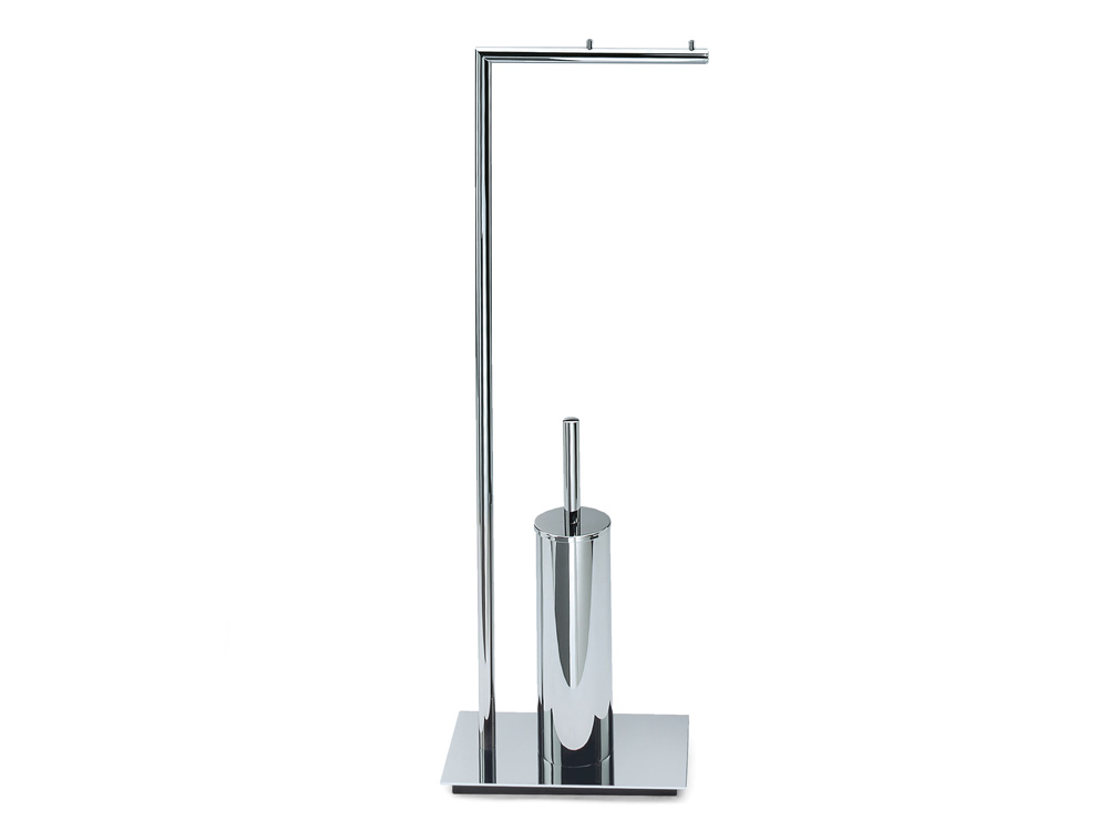 Elegancki podłogowy wolnostojący stojak na papier toaletowy i szczotkę do toalety 2w1.