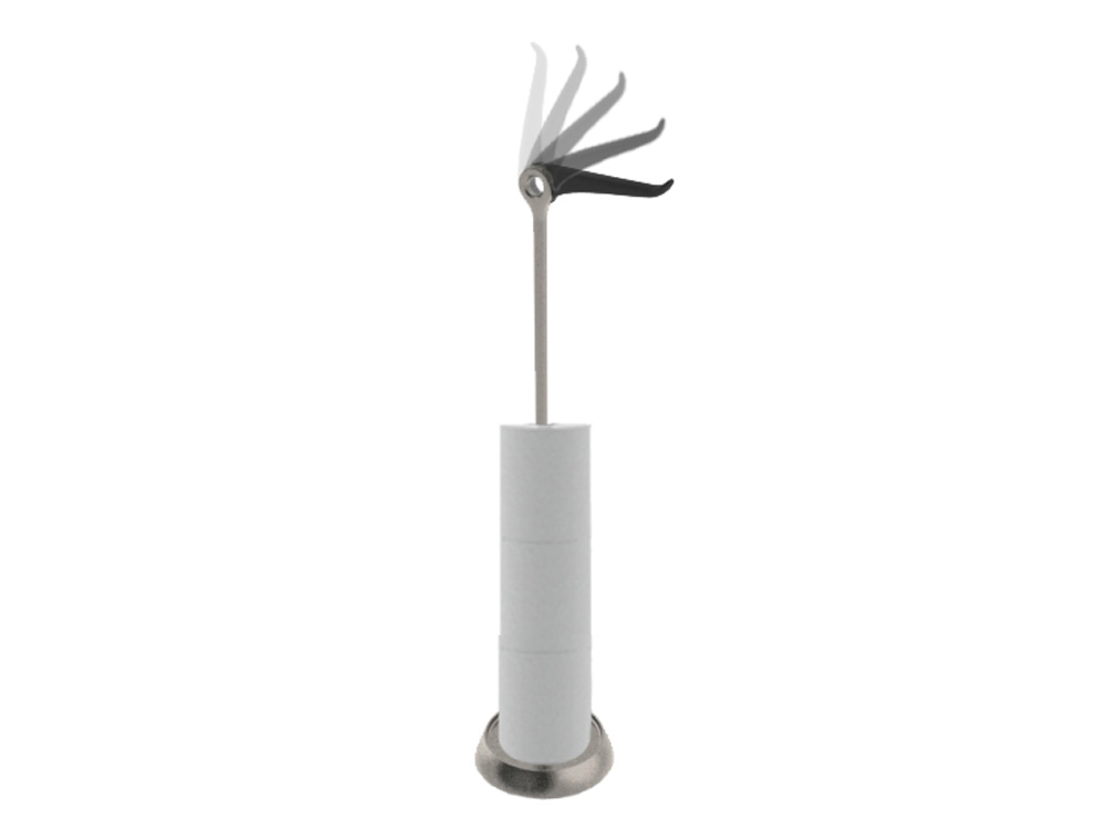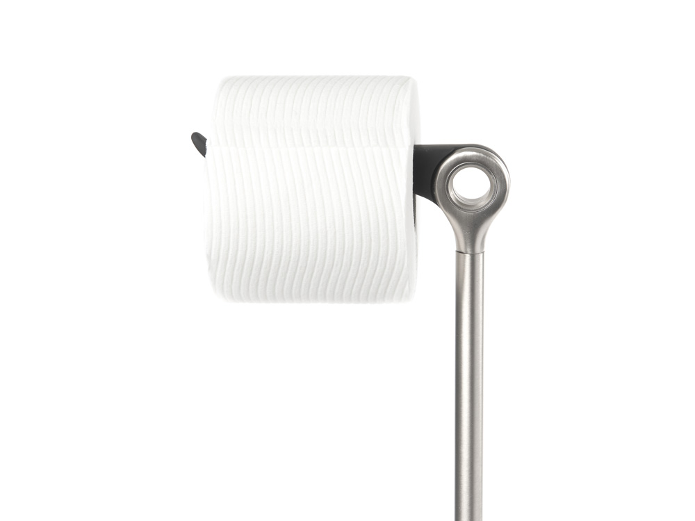 Odchylenie uchwytu do pozycji pionowej umożliwia umieszczenie zapasowych rolek papieru na trzonie stojaka - można na nim umieścić do 5 -ciu rolek papieru.